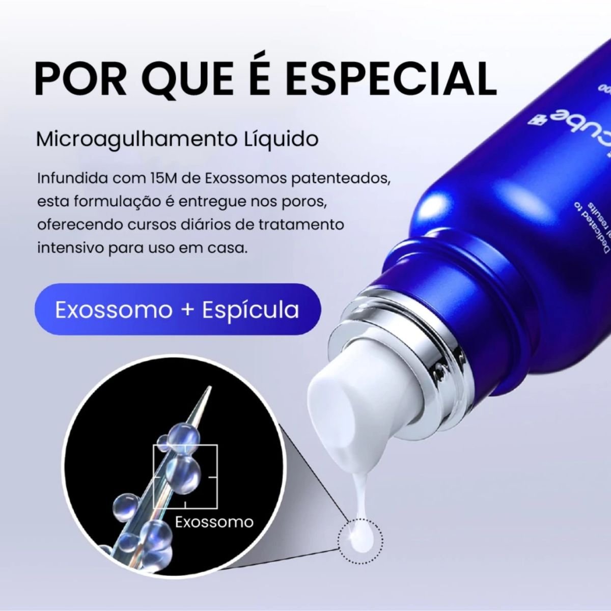 Principais ativos: Exossomos, niacinamida, AHA, BHA e PHA