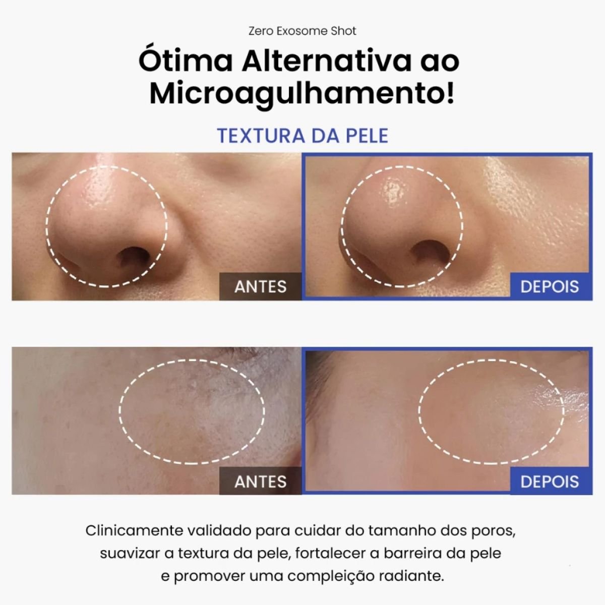 Um tratamento intensivo em formato de ampola com tecnologia de microagulhas e exossomos, desenvolvido para melhorar visivelmente a textura da pele, reduzir poros e estimular a regeneração celular. Sua fórmula inovadora entrega ativos diretamente nas camadas mais profundas, promovendo uma pele mais lisa, uniforme e revitalizada.