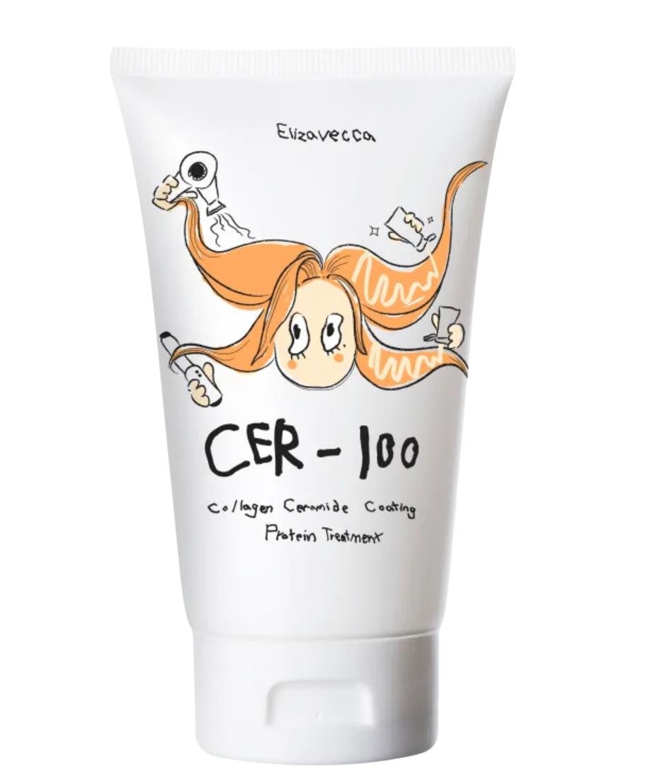 Máscara regeneradora com colágeno e ceramidas. Elizavecca CER-100 Collagen Ceramide Coating Protein Treatment restaura e hidrata cabelos ressecados e danificados.